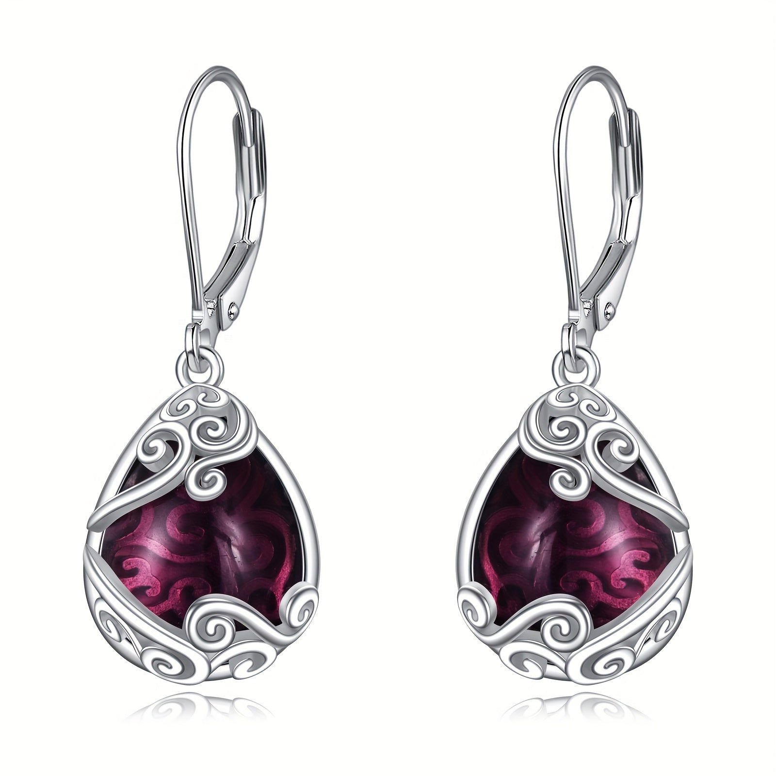 925 Sterling Silver Amethyst Drop Earrings Filigree Teardrop Dangle Earrings Jewelry Gifts For Women Mother Daughter