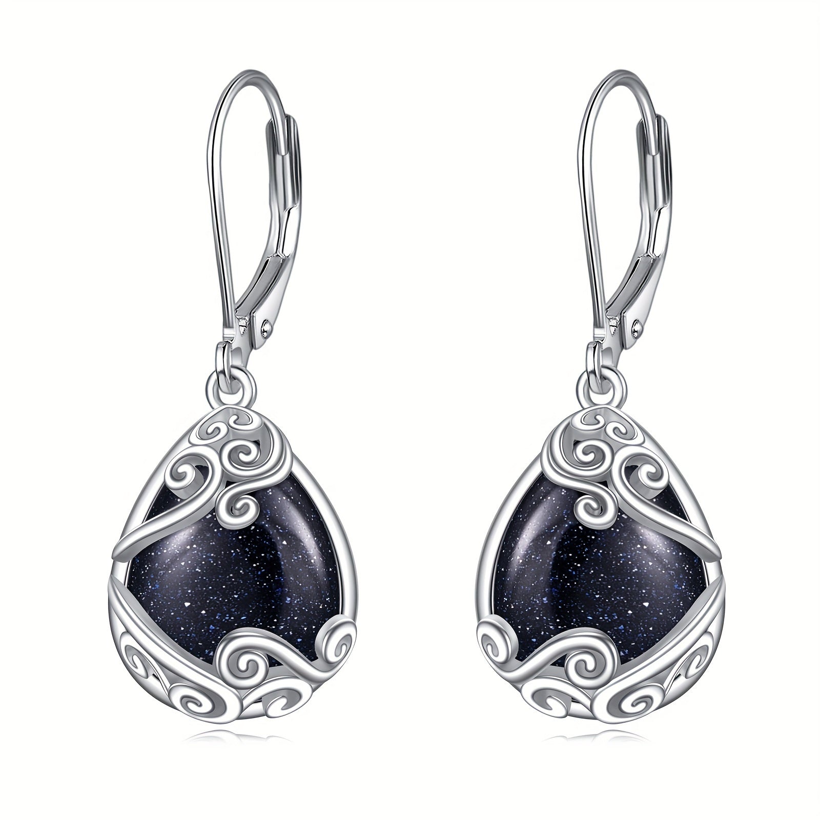 925 Sterling Silver Blue Sandstone Drop Dangle Teardrop Earrings Leverback Earrings For Women Jewelry Gifts