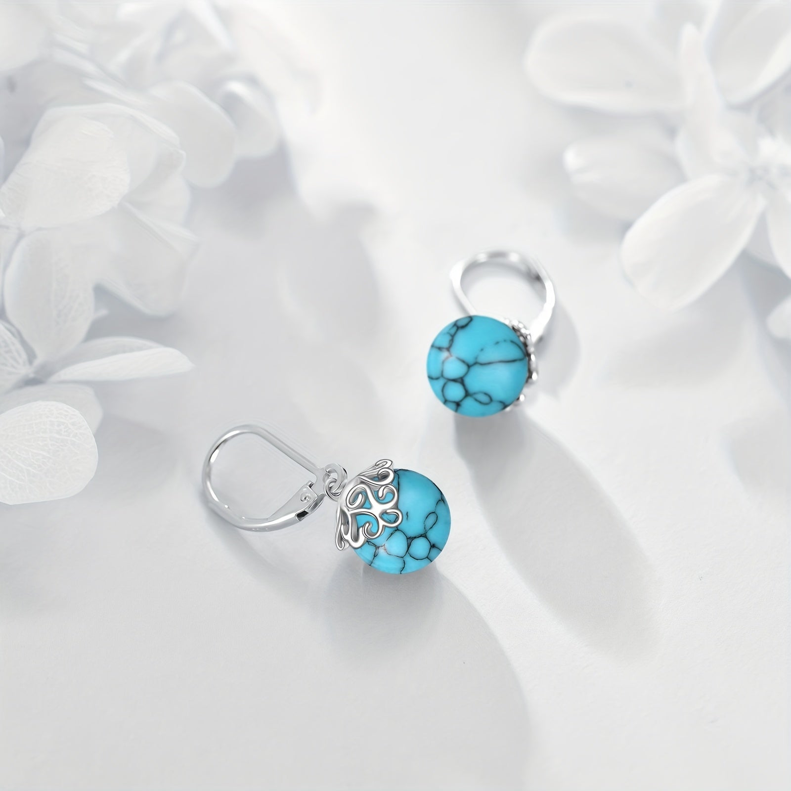 synthetic turquoise   earrings 925 sterling silver dangle leverback earrings for women birthday gifts hypoallergenic Product details 1